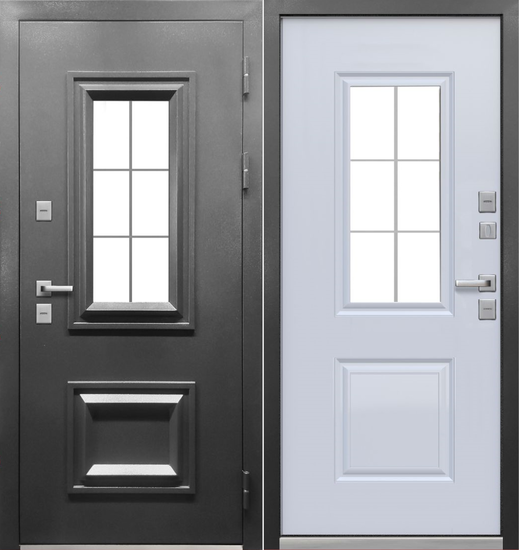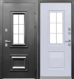 Дверь ТЕРМО 3 (стеклопакет) Букле графит /Эмалит белый/ 3 контура