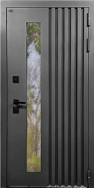 Дверь ТЕРМО LUX-1 STR Муар антрацит/ Дуб канадский светлый/ Стеклопакет узкий/ 3 контура